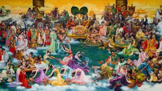 Sri Hari is Leela-Purusottama, the superlative Divine of all Humanly Leela. He signifies the amalgamation of all the souls in spiritual love, enabling all humans to achieve triumph over worldly desire.
