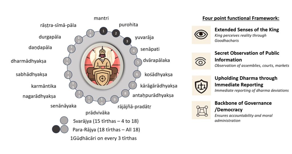 (Figure 2: Gūḍhācāri Network – Backbone of Democracy (Ayodhyākāṇḍa 2.100.35–37) -A circular intelligence system ensuring real-time feedback, dharma enforcement, and administrative integrity.)