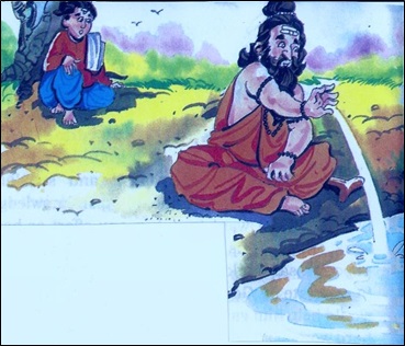 But Yavakrīta would not listen. He resumed his austerities and penance, hoping that Indra would eventually get impressed and bless him with knowledge. One day, Yavakrīta went to the River Ganga to take a bath, when he noticed an old man throwing handfuls of sand into the river current. When Yavakrīta asked him the reason for doing so, the old man said, “People have a difficulty crossing the river. Therefore, I am constructing a bridge across it by throwing sand into the water.”